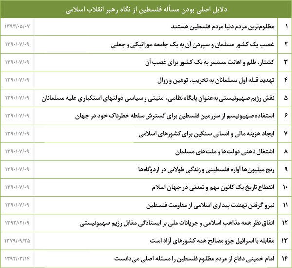 از دلایل اصلی بودن مسأله فلسطین از نگاه رهبر انقلاب اسلامی آورده شده